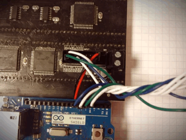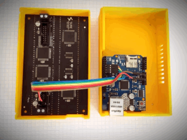 laboîte est un Arduino accompagnée d'un module Ethernet et d'un écran (appelé aussi matrice de LED).