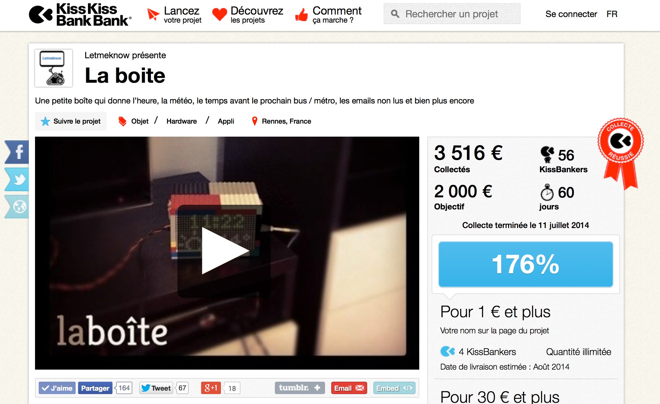 To boost the dev effort, to make a more stable code and to expand the community, the laboite project raised 3 516 EUR on KissKissBankBank in July 2014.